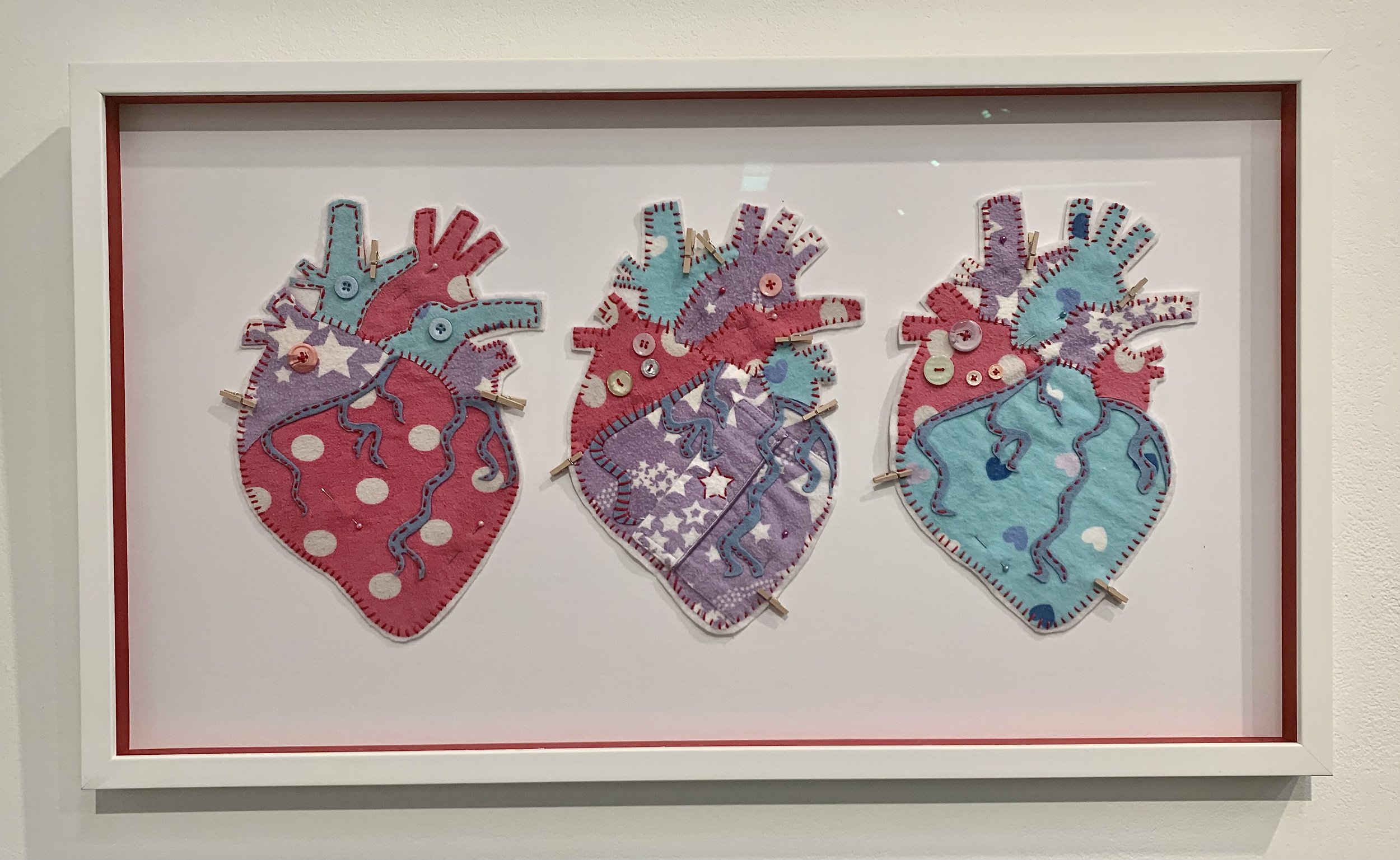 I craved working in a more tactile way and as a result turned to working with my hands to sew. Heartherapy was my response to the era. I felt the situation was so critically broken, that all I wanted to do, was literally sew the broken pieces of our hearts back together. The act of sewing, was what kept me steady during this period and helped me to relieve some of the anxiety of living through the pandemic years. Over the years, I have become interested in working in textiles, due to their associations with homeliness, the domestic and feminine cultures. In particular, I up-cycled flannel pyjamas, as they represent a feeling of being warm and cozy, a private and vulnerable self, that you don’t share with the public. As we exited the pandemic, I framed Heartherapy, as it became my personal souvenir of a very strange era, which will have ongoing impact for years to come.
