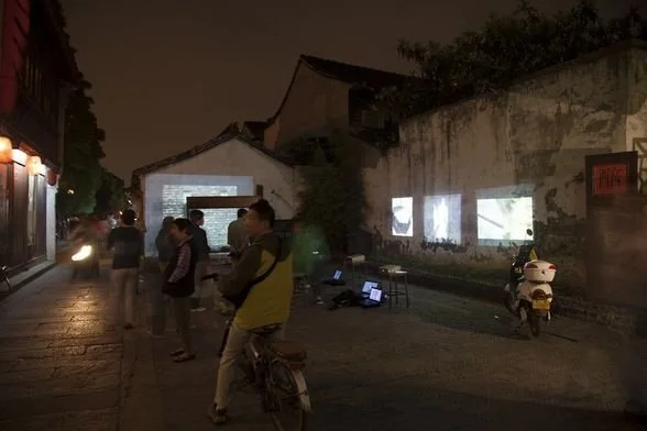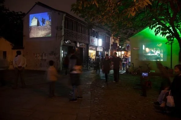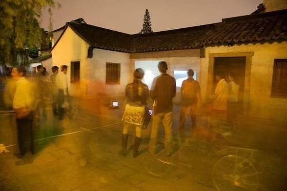 Artists included Hu Bing, Hua Qian, Li Weilin, Li Xiaosong, Wang Gang, Wu Zhongwen, Yang Haitao, Zhang Mingxing, Zhou Wei, John Billan, Martine Corompt, Mark Galer, Ian Haig, Shane Hulbert, Bronek Kozka, Harry Nankin, Nikos Pantazoplous, Craig Shell, Matthew Sleeth, Darren Sylvester, Dominic Redfern and Lyndal Walker. Lumens Festival: Curating the Ancient City was a public projection festival of Australian and Chinese photographers and video artists works in the Ping Jiang Road canal site of Suzhou, China, a busy local night time precinct. The project originated from my doctoral research on The City as a Curated Space (2011) and investigated the potential of contemporary art projection to activate heritage sites and bring together local communities over a dialogue between Melbourne and Suzhou based artists. The city of Suzhou is famed for it's white lime washed network of canals, a legacy of the silk trade of the region from two thousand five hundred years ago. These amazing canal structures were the point of inspiration for developing a project working with media based contemporary artists.