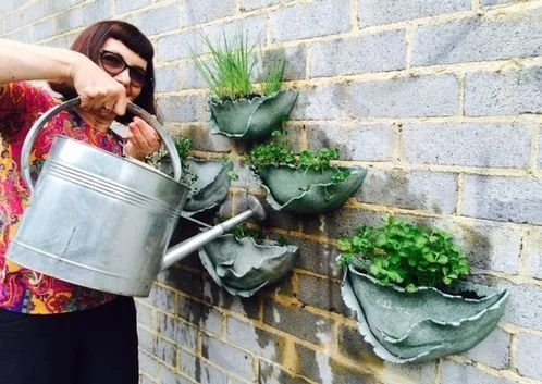 Images: Suzy Pinchen watering plants in Mountfield Lane, Brunswick.